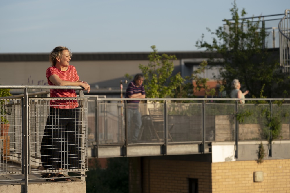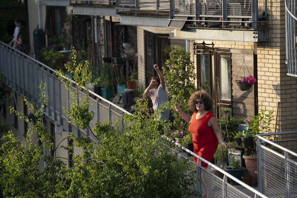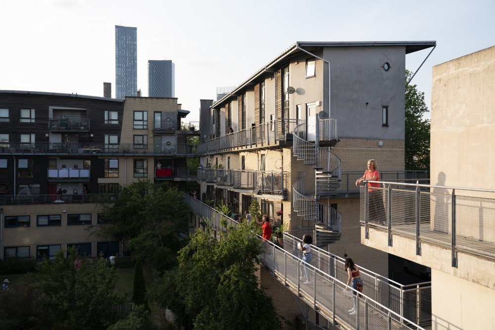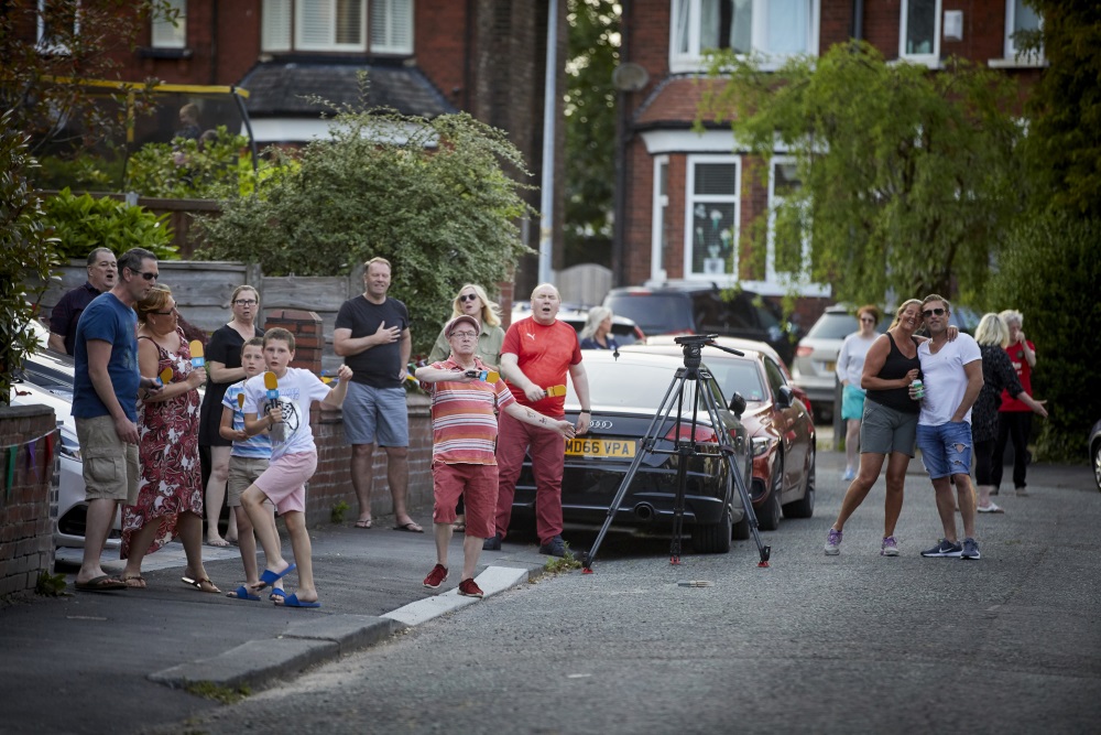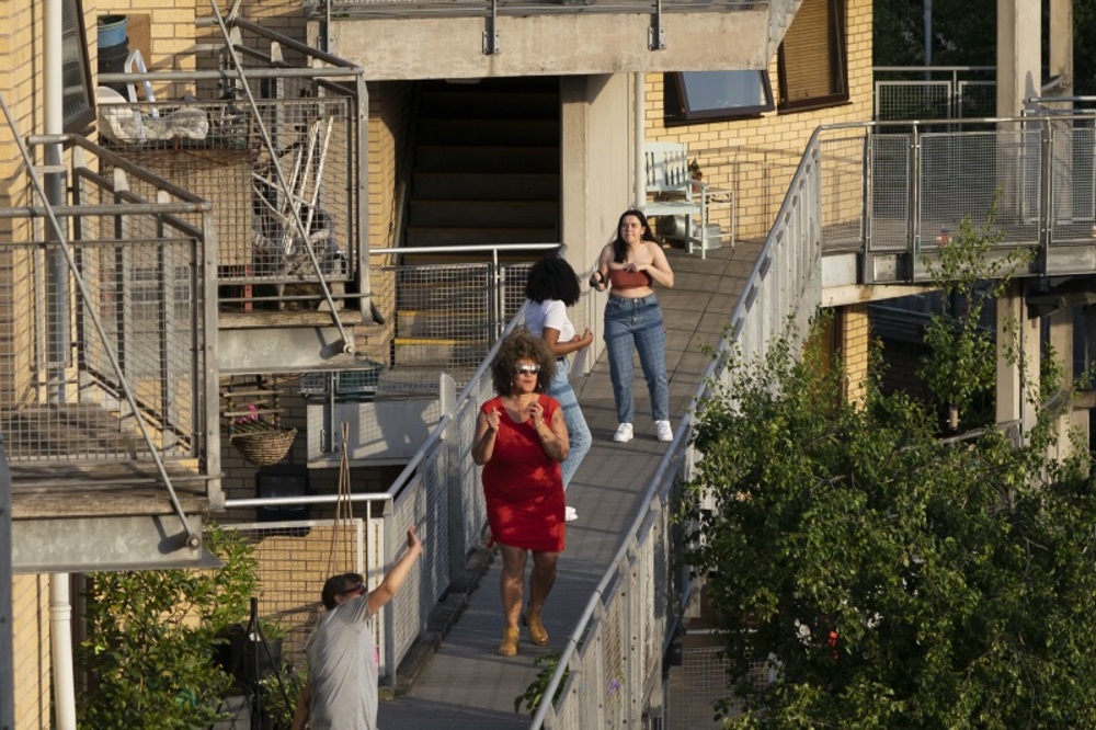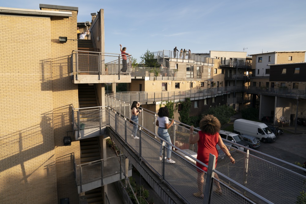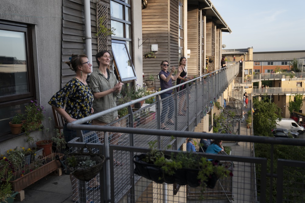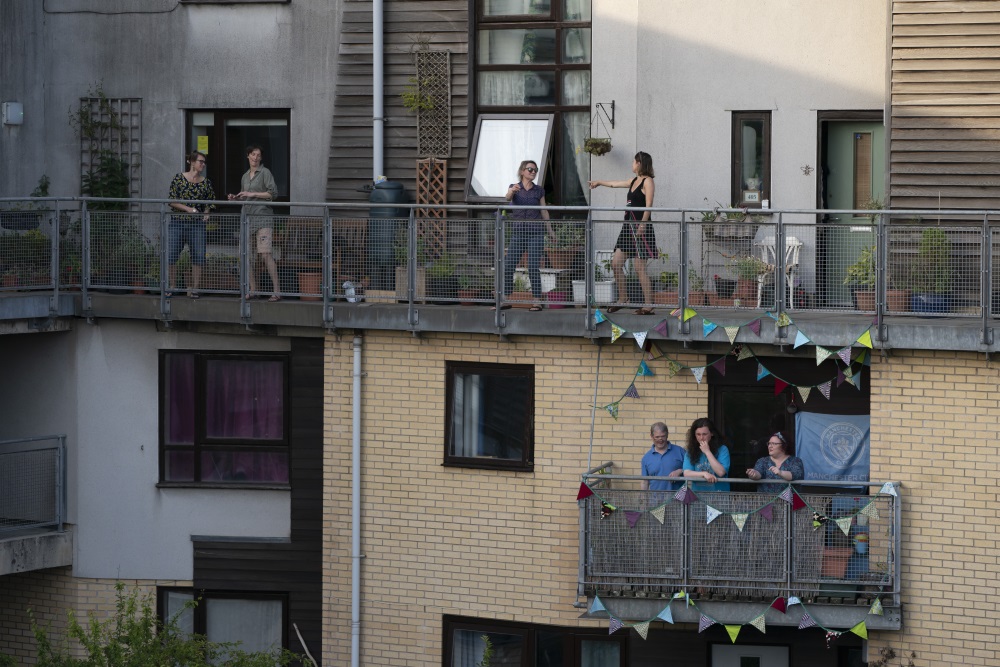Picture shows residents of flats at Old Birley Street in Hulme participating in the ‘Together In One Voice’ event as part of the Manchester International Festival, Thursday May 28, 2020.