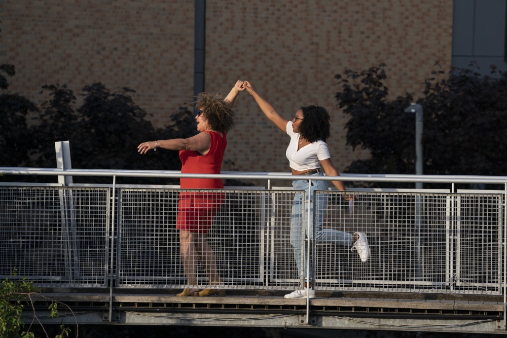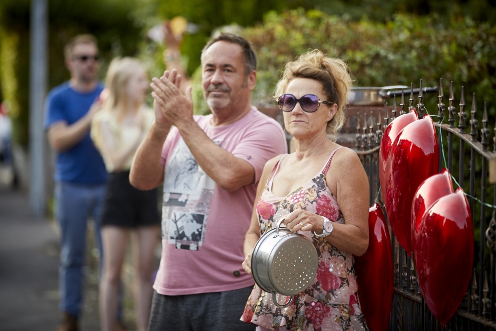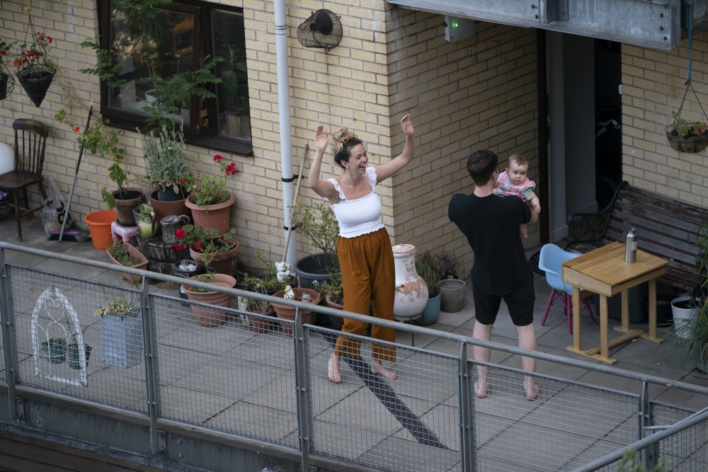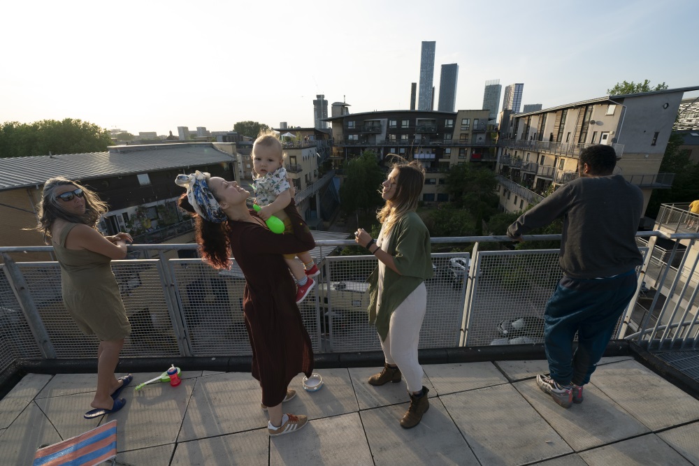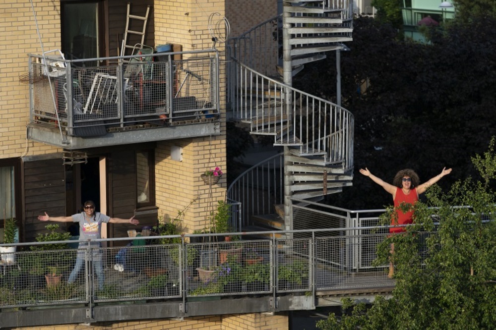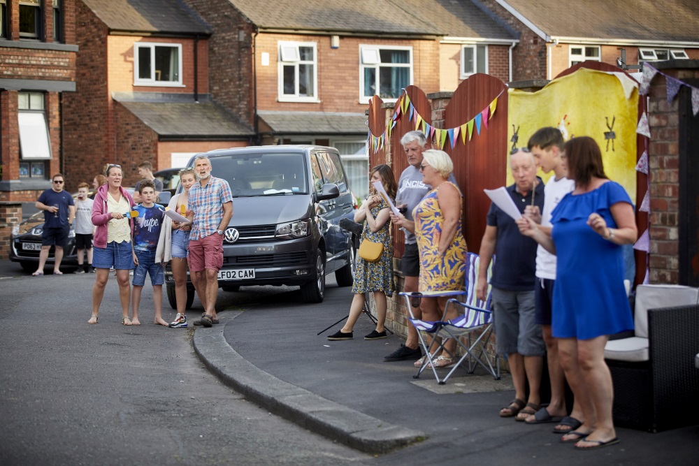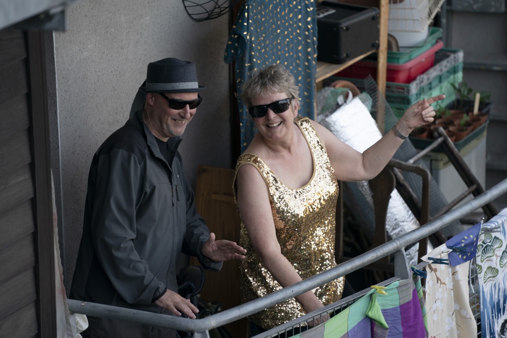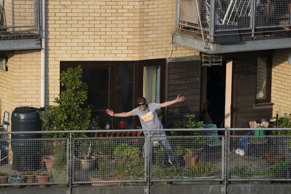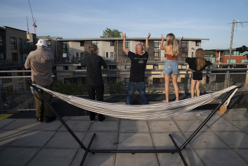 Picture shows residents of flats at Old Birley Street in Hulme participating in the ‘Together In One Voice’ event as part of the Manchester International Festival, Thursday May 28, 2020.